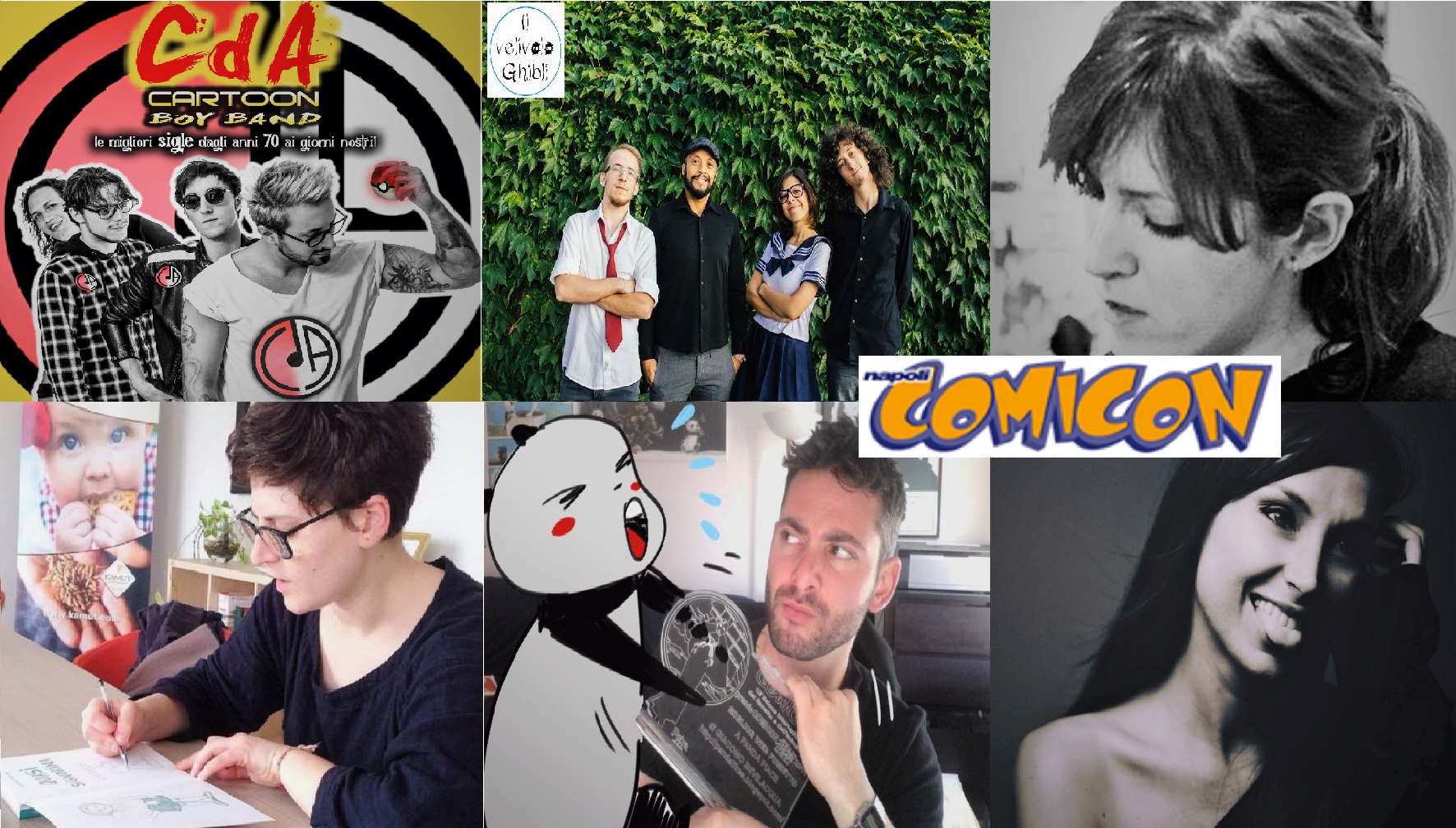 Sono una pop-rock band romana nata nel 2014 che è già stata al COMICON l’anno precedente e torna per riproporre il loro repertorio fatto di inediti uniti alle più classiche sigle dei cartoni animati: da Jeeg Robot all’Uomo tigre, da Pollon a Dragon Ball, da Mila e Shiro ai Pokémon, giusto per citarne alcune.  La band si esibirà nella fantastica ETES Arena Flegrea.